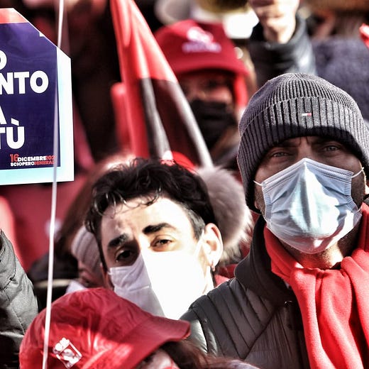 Sciopero generale, piazze piene a Roma, Milano, Bari, Palermo e Cagliari. In Italia crescita settimanale dei contagi da coronavirus al +18%.